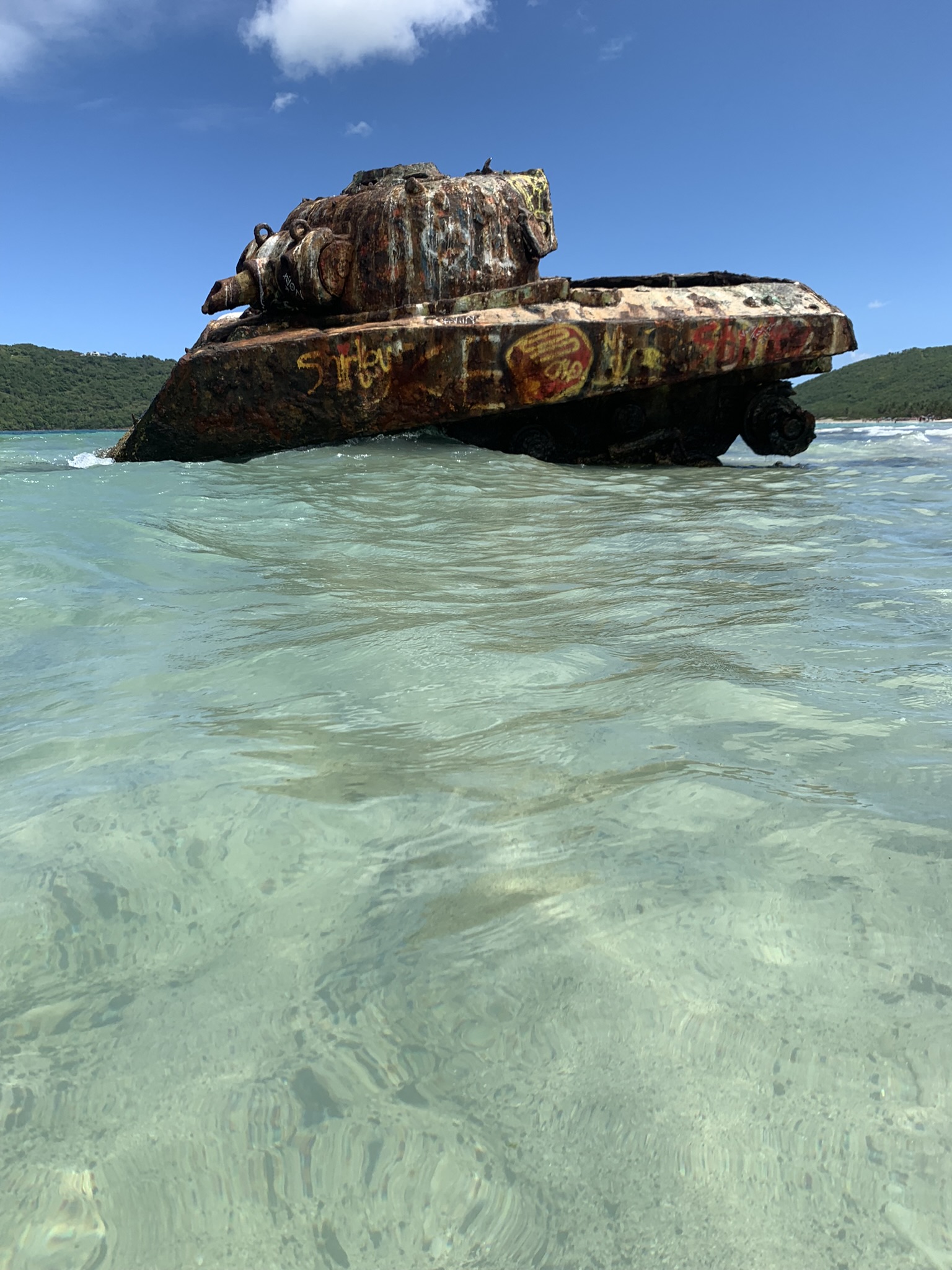 A single image of a tank in the water from Puerto Rico. Purchase to add to your content library.
